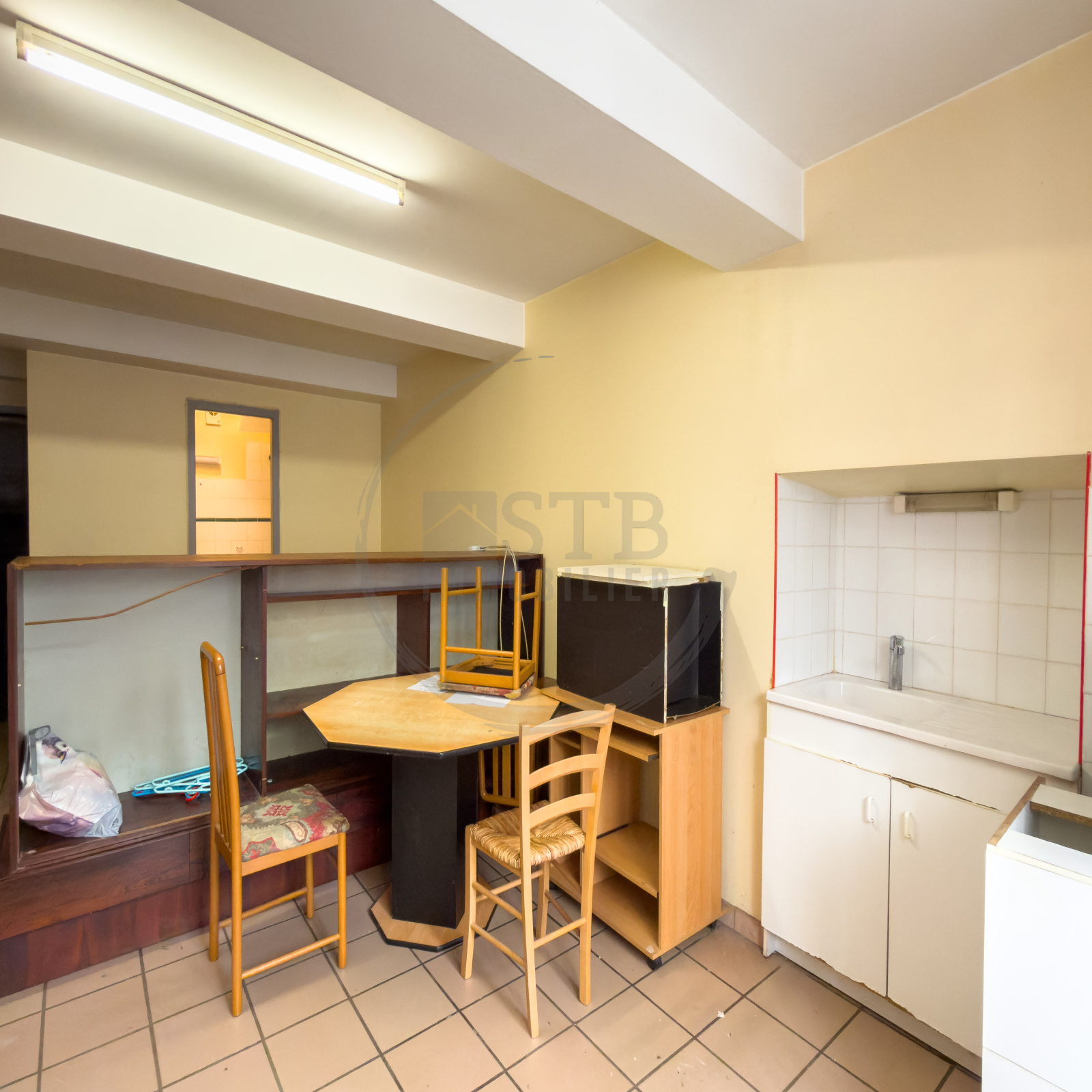 Un studio actuellement fonctionnel permet une utilisation immédiate ou un revenu locatif pendant la phase de travaux.