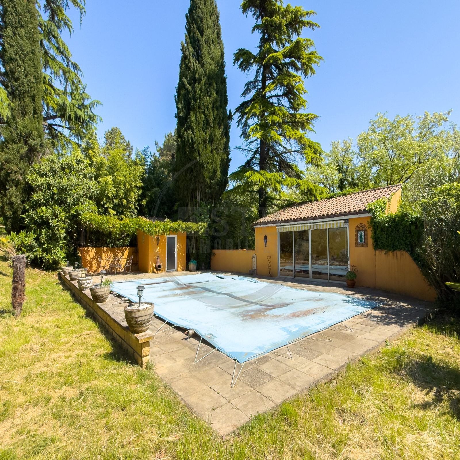 La propriété dispose de nombreuses dépendances : garage, caves, auvent, local technique. Vous profiterez également d’un espace piscine sans vis-à-vis, avec pool-house équipé (bar, douche, WC), d’un bel espace extérieur ombragé, ainsi que d’un terrain de pétanque.