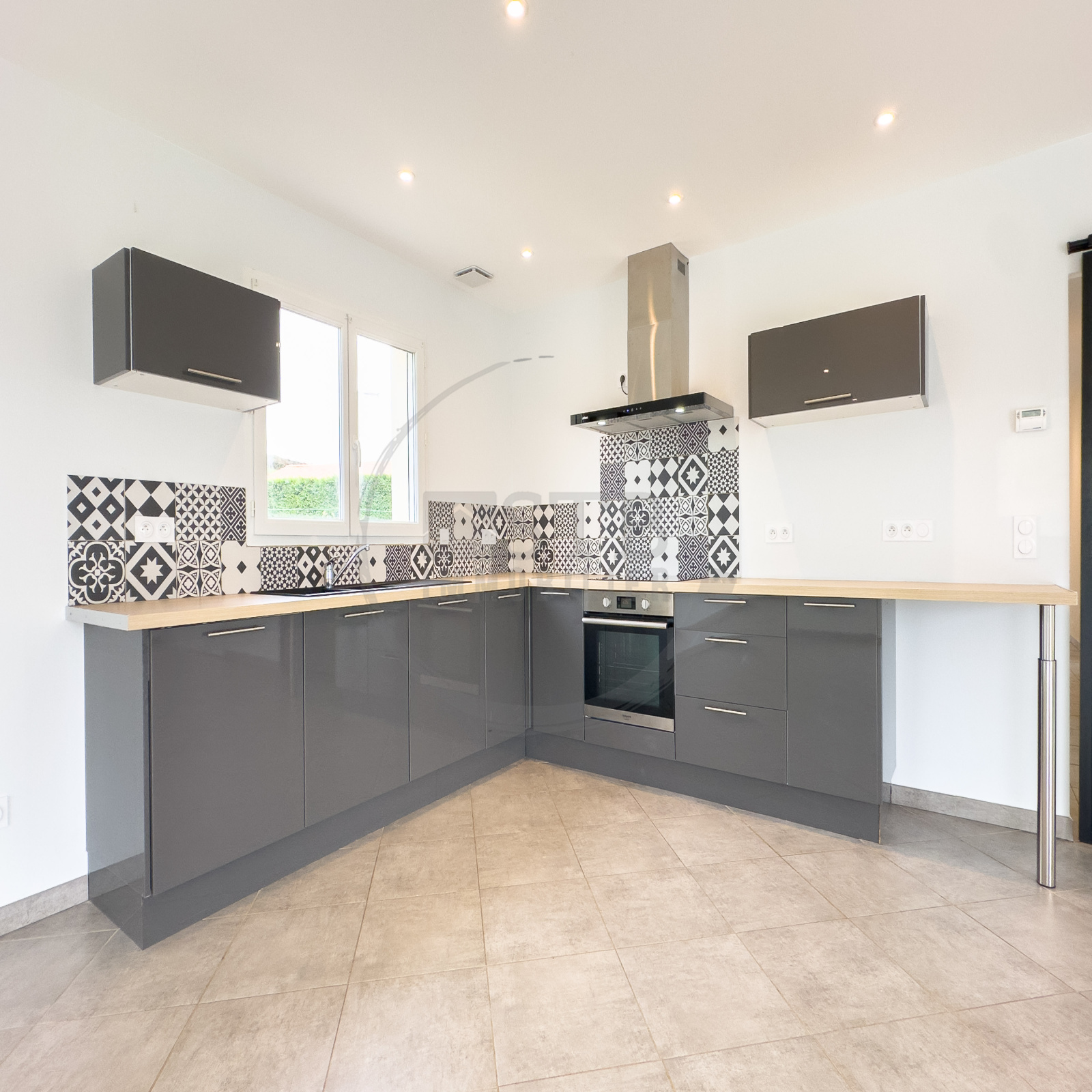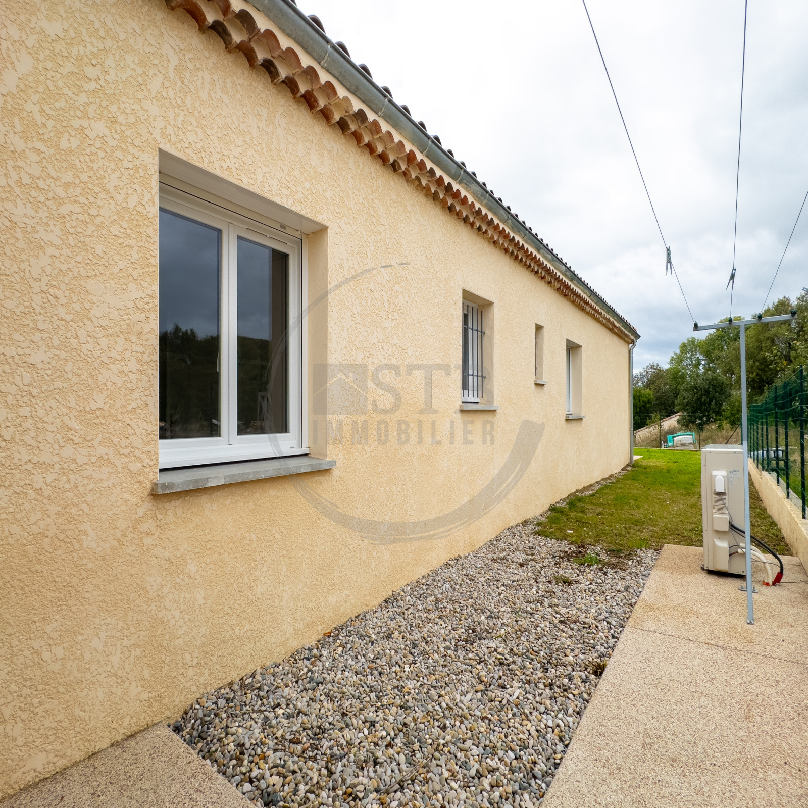 Édifiée en 2022 avec des prestations modernes, elle possède un chauffage au sol par pompe à chaleur, volets roulants électriques, ballon thermodynamique, béton désactivé, etc..