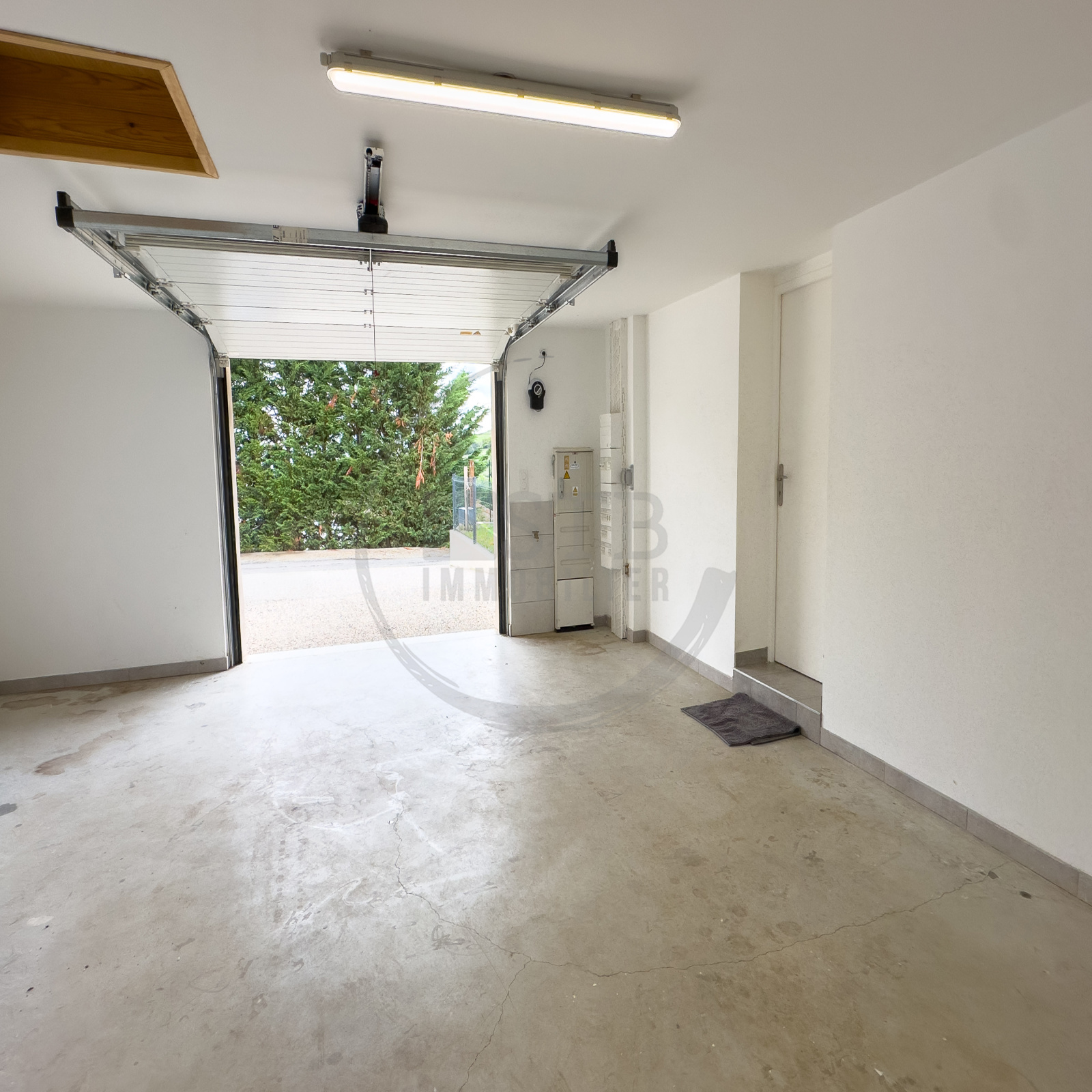 Le parking en béton désactivé vous donnera accès au garage avec porte sectionnelle électrique et coin chaufferie.