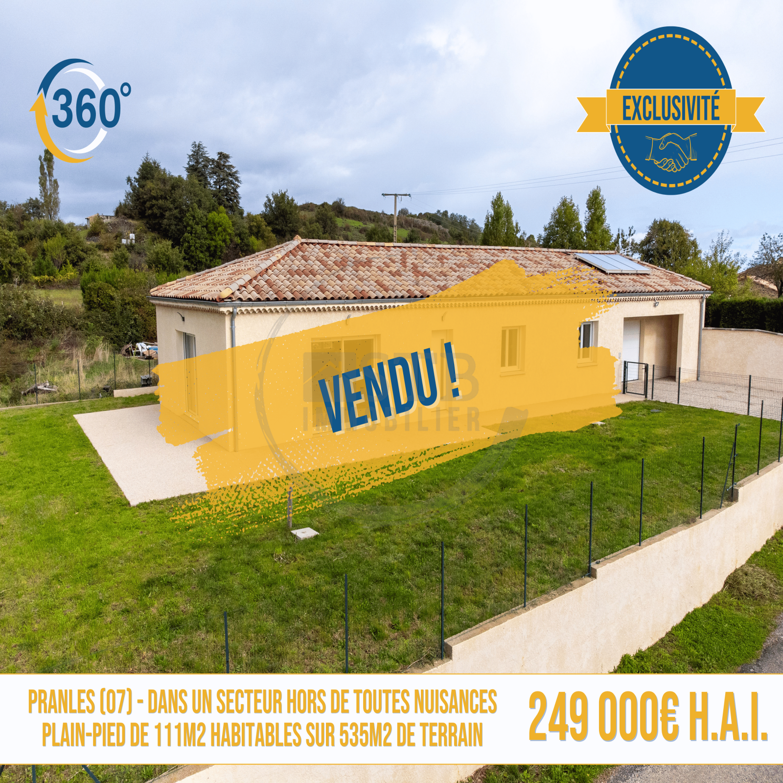 Pranles (07000) Plain-pied de 111m2 habitables environ sur 535m2 de terrain