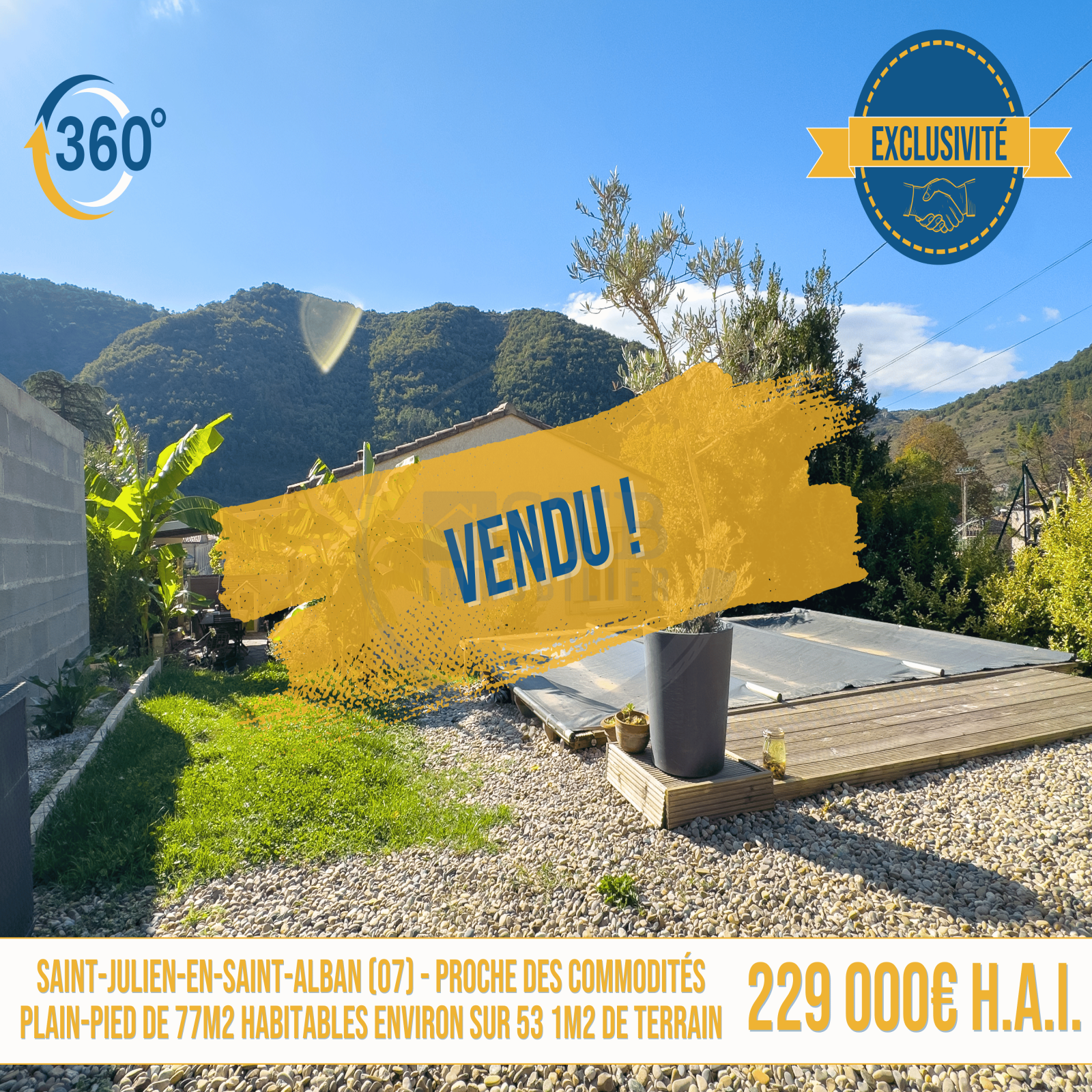 Saint-Julien-en-Saint-Alban (07000) Maison de plain-pied de 77m2 environ sur 531m2 de terrain