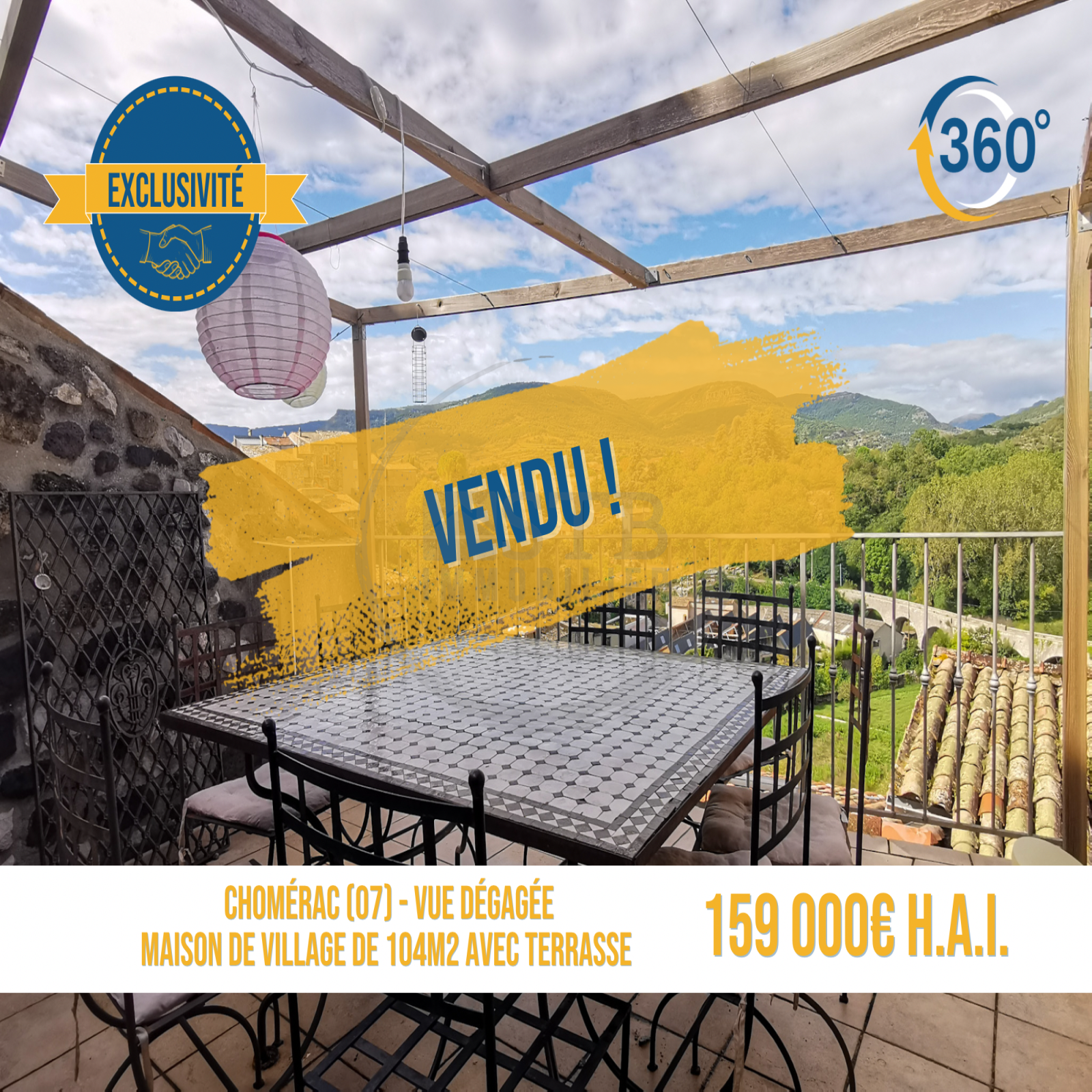 Chomérac (07210) Maison de village à vendre terrasse à Chomérac avec Agence