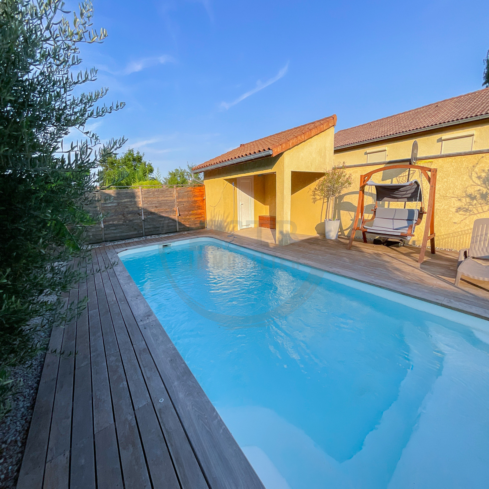 À l’extérieur, vous profitez d’une piscine au sel construite en 2012, aux dimensions de 9,5 x 3,8, équipée d’un système de dosage automatique du pH, ainsi que d’un arrosage automatique alimenté par un puits.